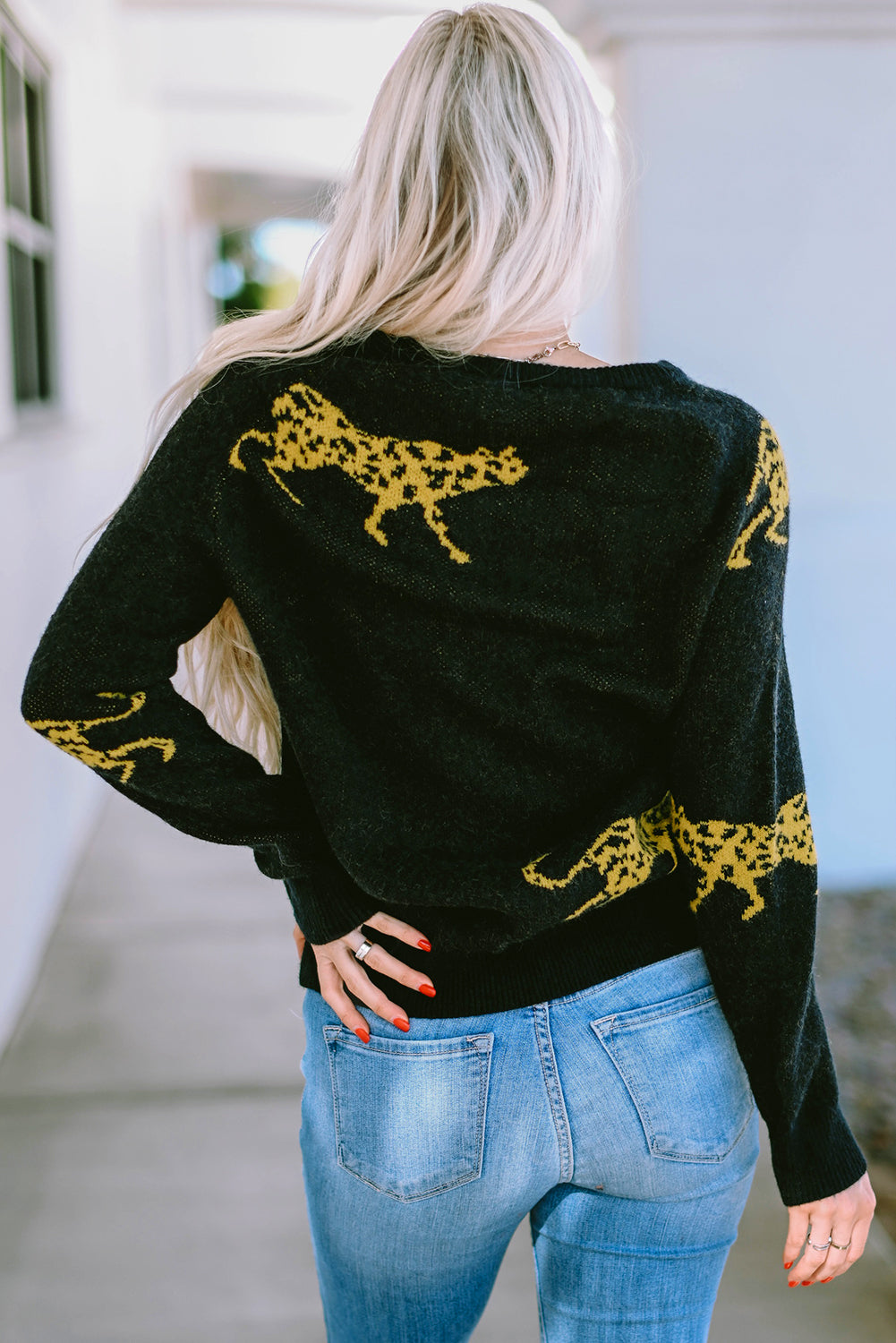 - Crafted from soft knitted fabric, this sweater offers warmth and comfort