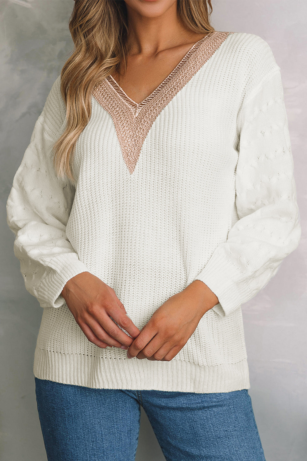 • The lace V-neck brings a sense of design to this sweater, and the puff sleeves are playful