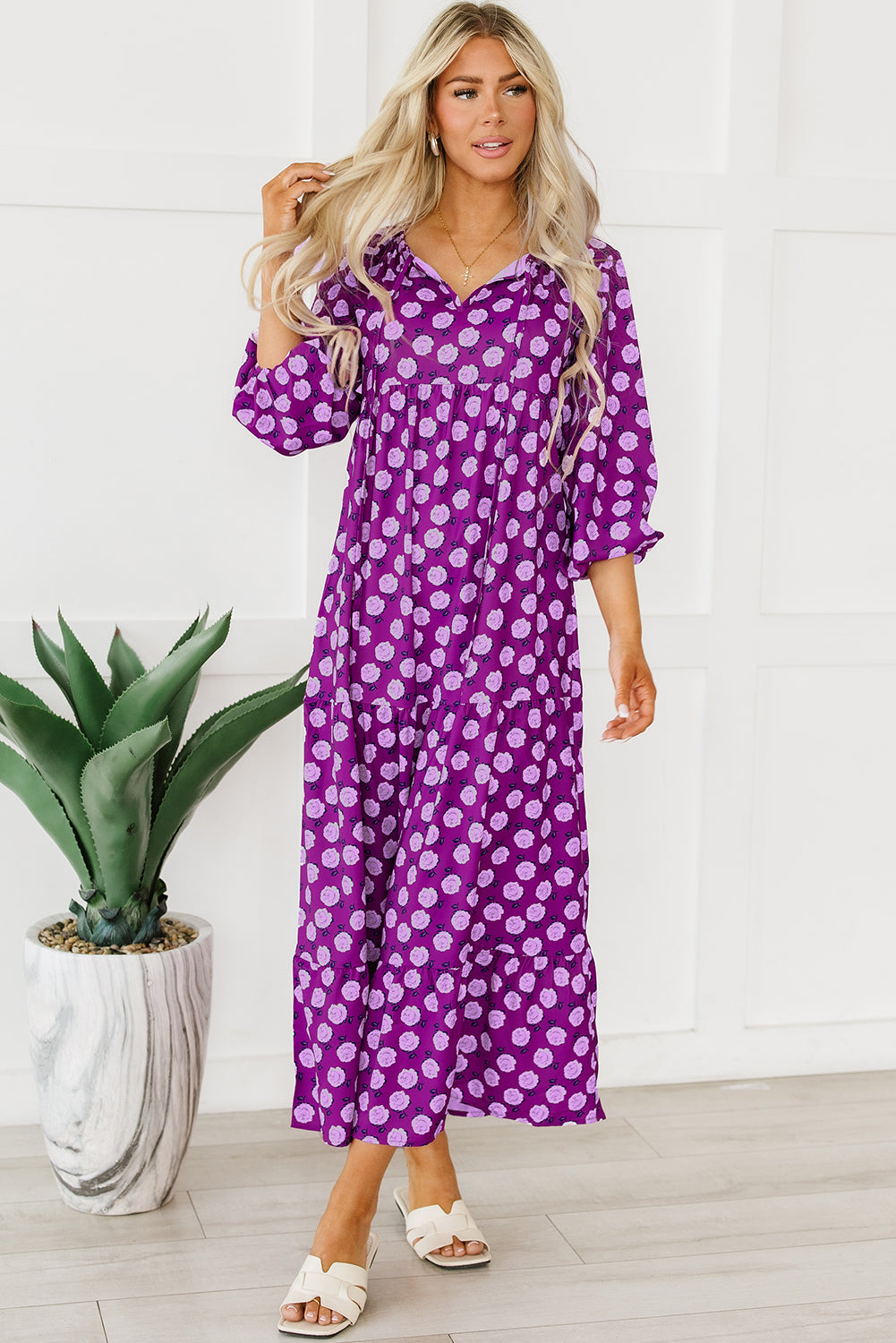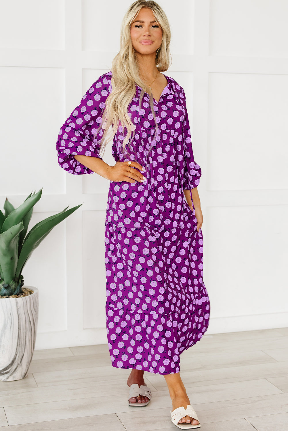 Purple Boho Printed Puff Sleeve Maxi Dress